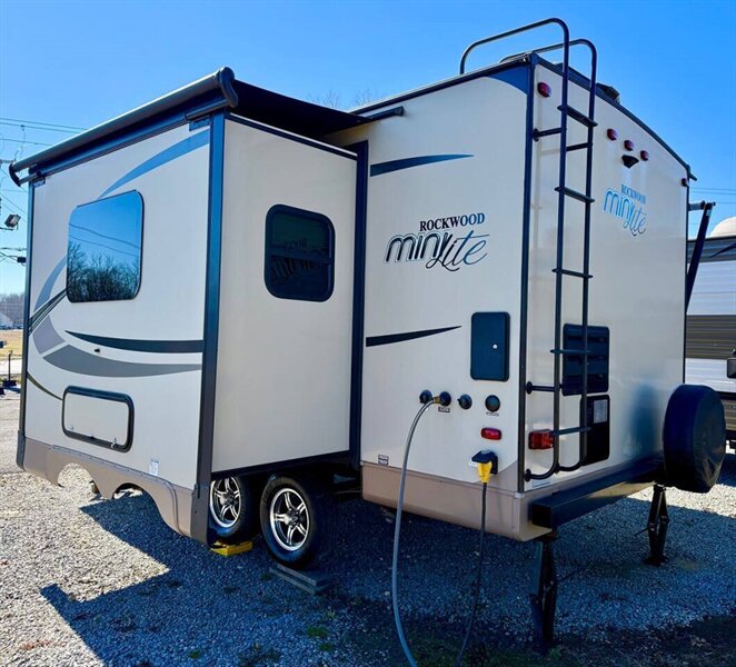 THIS 2018 ROCKWOOD MINI LITE HAS JUST TRADED IN! REAR BATH FLOOR PLAN WITH SLIDE OUT. FEATRUING A POWER HITCH JACK, FRONT AND REAR STABLIZERS, 4 OUTDOOR ACCESS STORAGE COMPARTMENTS, 2 PROPANE TANKS, TANDEM AXLES WITH ALUMINIUM WHEELS, ALUMINIUM ENTRY STEPS, POWER AWNING, POWER SLIDE WITH SLIDE AWNING, REAR LADDER, REAR BUMPER MOUNTED SPARE, 30 AMP POWER CORD, MURPHEY BED, JACKNIFE SOFA, BEDSIDE CLOSETS, U SHPE DINETTE CONVERTABLE TO BED, GAS STOVE AND OVEN, GAS/ELECTRIC FRIG, MICROWAVE, TV, REAR BATHROOM WITH STEP IN SHOWER WITH GLASS DOORS. 22 FEET LONG. 4,500 LBS BASE WEIGHT. SLEEPS UP TO 4. FINANCING AVAILABLE WITH COMPETETIVE RATES THROUGH OUR LOCAL CREDIT UNIONS. IF YOU HAVE LESS THAN PERFECT CREDIT WE HAVE FINANCING AVAILABLE FOR YOU AS WELL. COME SEE WHY WE ARE A 5 TIME CARGURUS GOLD RATED DEALER AND BBB OF NORTH ALABAMA ACCREDITED BUSINESS! WE ARE A FAMILY OWNED BUSINESS SINCE 1978. GIVE US A CALL TODAY TO SET UP A TIME TO SEE THIS AMAZING VEHICLE. CALL OR TEXT 256.803.7432 OR 256.528.7668 WE HOPE YOU AND YOUR FAMILY HAVE AN AMAZING DAY!